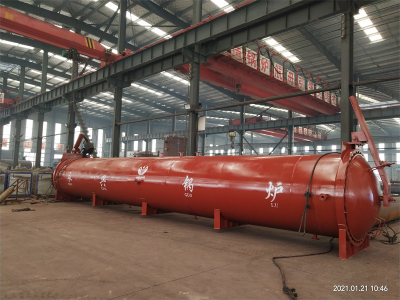 由于蒸压釜工作介质多采用饱和蒸汽,所以为了尽量减少釜体不均匀受热而产生的变形,对于较K的蒸压釜不宜采用集中进汽方式,而应该在釜内沿釜长度方向设置蒸汽分配管,蒸汽从进汽口进人后沿分配管分配到釜内各处,使整个釜体均匀受热。蒸压釜在升压时,釜体底部有冷凝水,底部温度比上部温度低。在不影响操作和小车行走等因素时,分配管尽量靠近釜体底部。